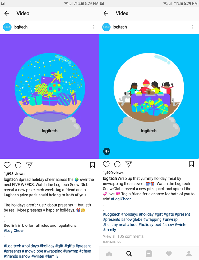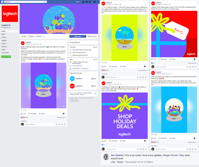 ... and for the holiday season, we collaborated with Logitech to create a series of fun snowglobe animations and a collection of static designs for their #LogiCheer holiday giveaway. These spots were integrated into a call-to-action campaign with big holiday giveaways across all social media platforms.